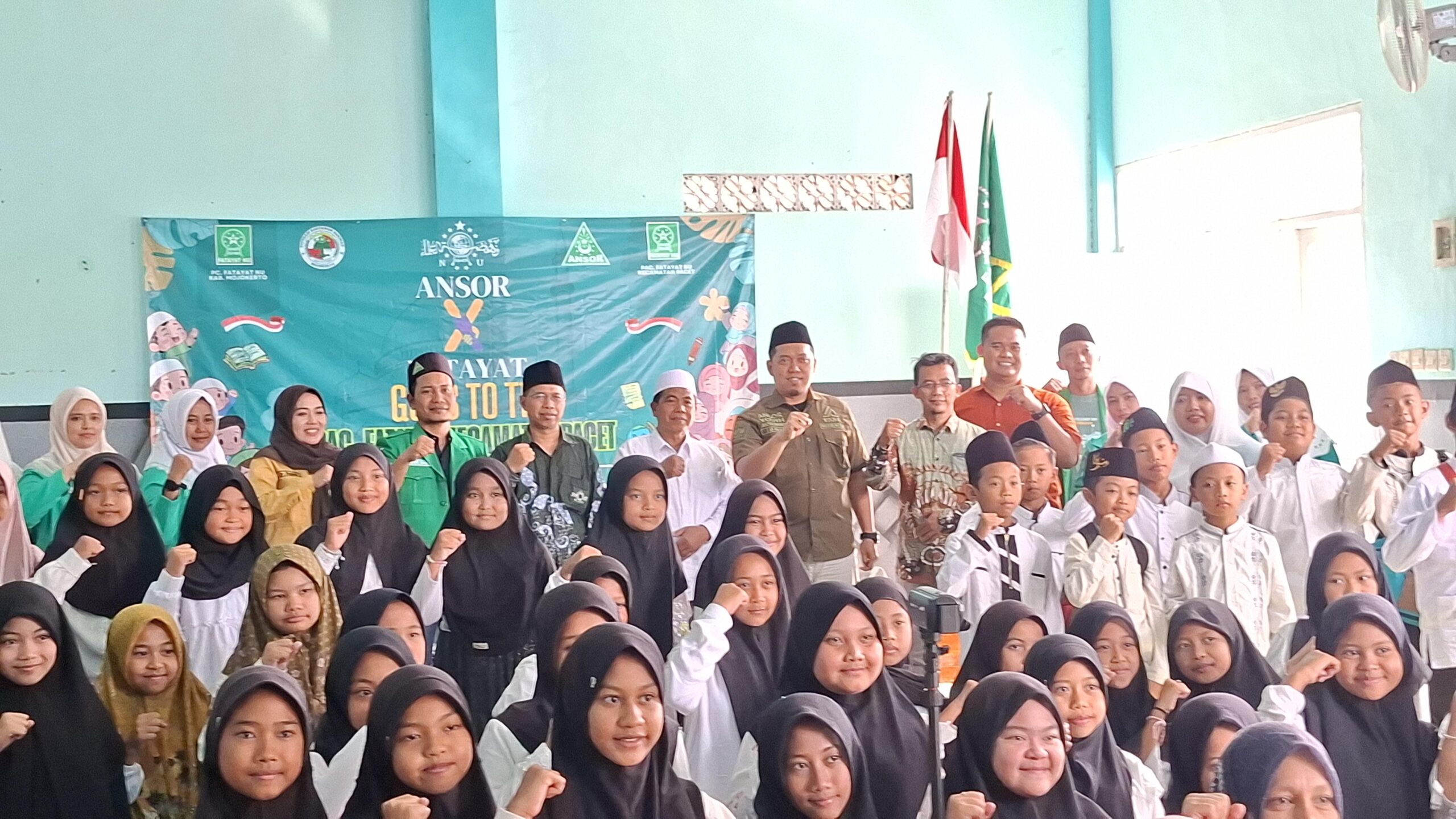 Pacet – PC GP Ansor dan PC Fatayat NU Kabupaten Mojokerto Melalui program kolaboratif “ANSOR DAN FATAYAT Goes to TPQ,” kader dan pengurus turun langsung ke TPQ An-Nur, Dusun Pacet Utara, Desa Pacet, Kecamatan Pacet, pada Selasa (22/10/2025) untuk menggelar kegiatan edukasi, sosial, dan kebersihan.