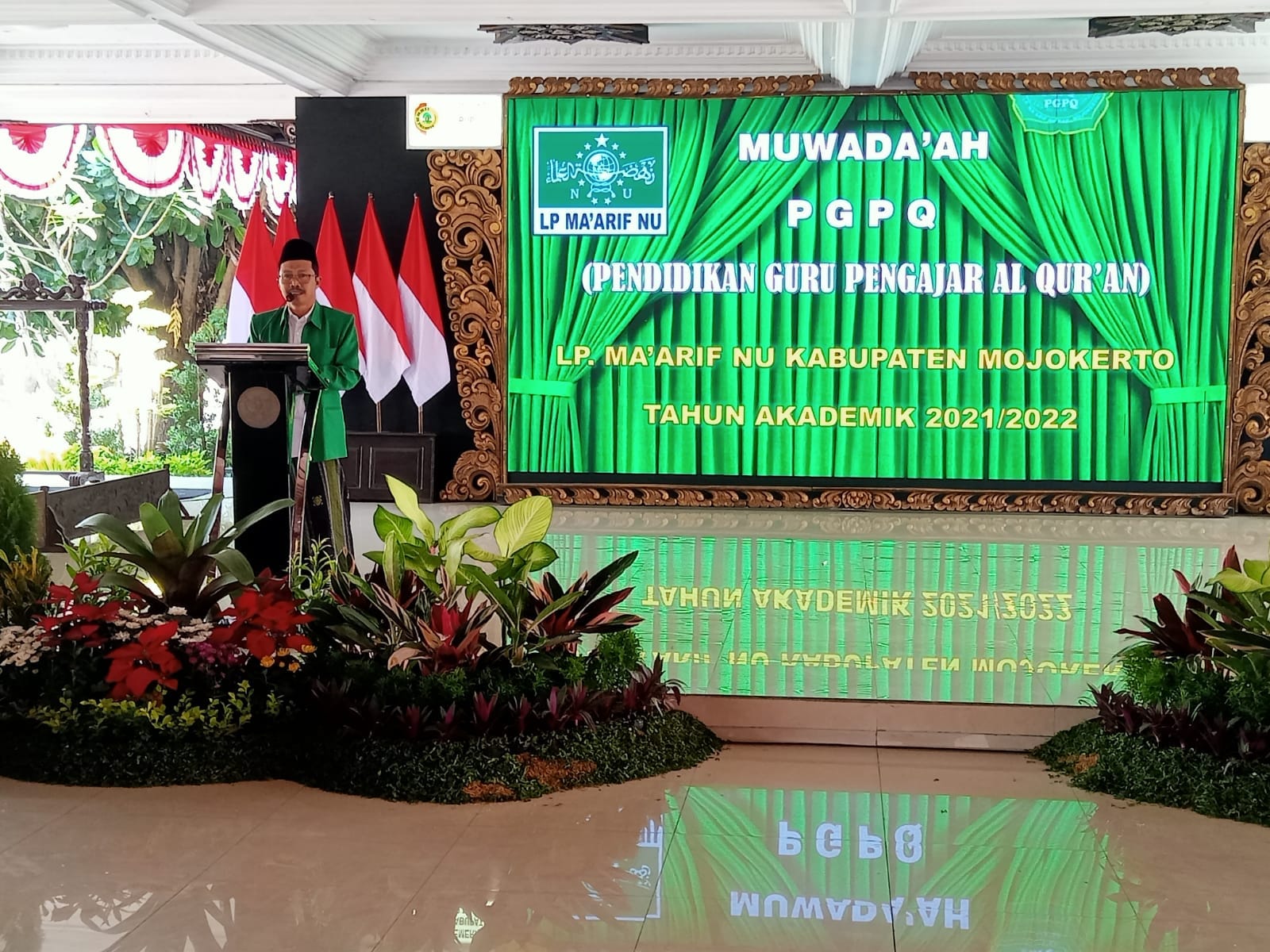 Mabin PGPQ LP. Maarif NU Kabupaten Mojokerto menggelar wisuda untuk para guru guru Al-Quran di Pendopo Kabupaten Mojokerto pada Ahad (21/08).