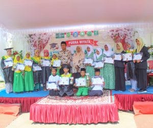 Acara wisuda purna wiyata berlangsung ramai dengan 3 jenjang dari PAUD, TK, dan MI. Acara ditutup dengan pemberian piagam cinderamata kepada siswa siswi yang berprestasi.