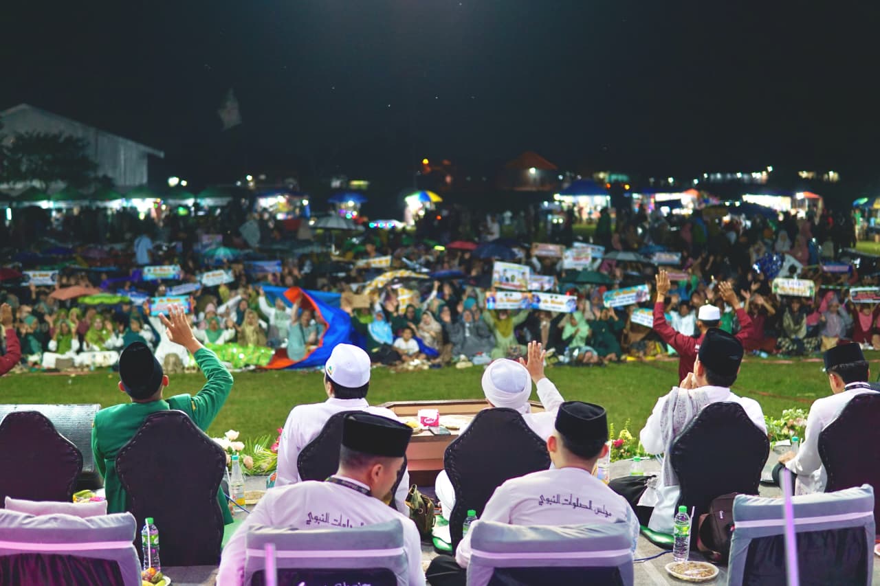 Antusiasme masyarakat terlihat sangat tinggi sejak sore hari. Warga tumpah ruah memadati area lapangan, menciptakan suasana yang hidup dan dinamis. Keramaian ini pun membawa dampak positif bagi sektor ekonomi lokal, di mana perputaran uang terjadi cukup signifikan selama kegiatan berlangsung. Meski hujan sempat mengguyur lapangan saat acara berlangsung, tidak menyurutkan antusias warga untuk melantunkan sholawat bersama An-Nabawy.