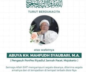 Selang dua hari dari meninggalnya Bu Nyai Faichah, KH. Mahfudz Syaubari, Pengasuh PP. Riyadul Jannah Pacet, pergi ke haribaan Allah menyusul istri tercinta pada selasa (16/8). Kabar duka secara berantai terkirim di grup grup whatsapp Pengurus dan warga Nahdliyin Mojokerto. Ucapan duka turut menyertai atas kepergian Kiai yang juga seorang pengusaha itu. Tak luput pula KH. Abdul Adzim Alwi, Ketua PCNU Kabupaten Mojokerto berduka atas kepergian sesama alumnus Ploso itu.