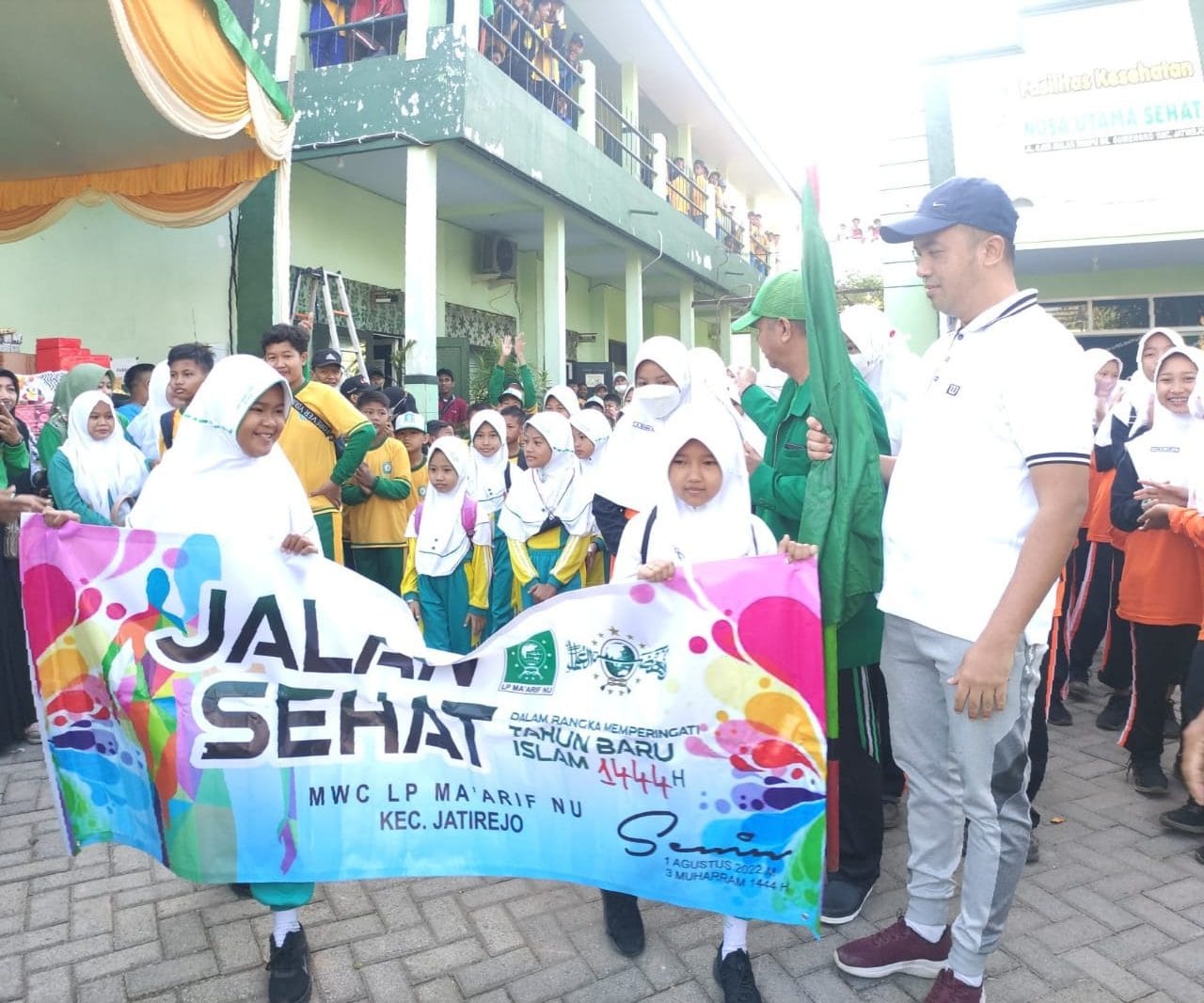 Jatirejo, NU Online Mojokerto – Memperingati tahun baru Islam 1444 Hijriah, LP Maarif MWCNU Kecamatan Jatirejo bekerjasama dengan Camat Jatirejo menggelar jalan santai pada Senin pagi (1/8).