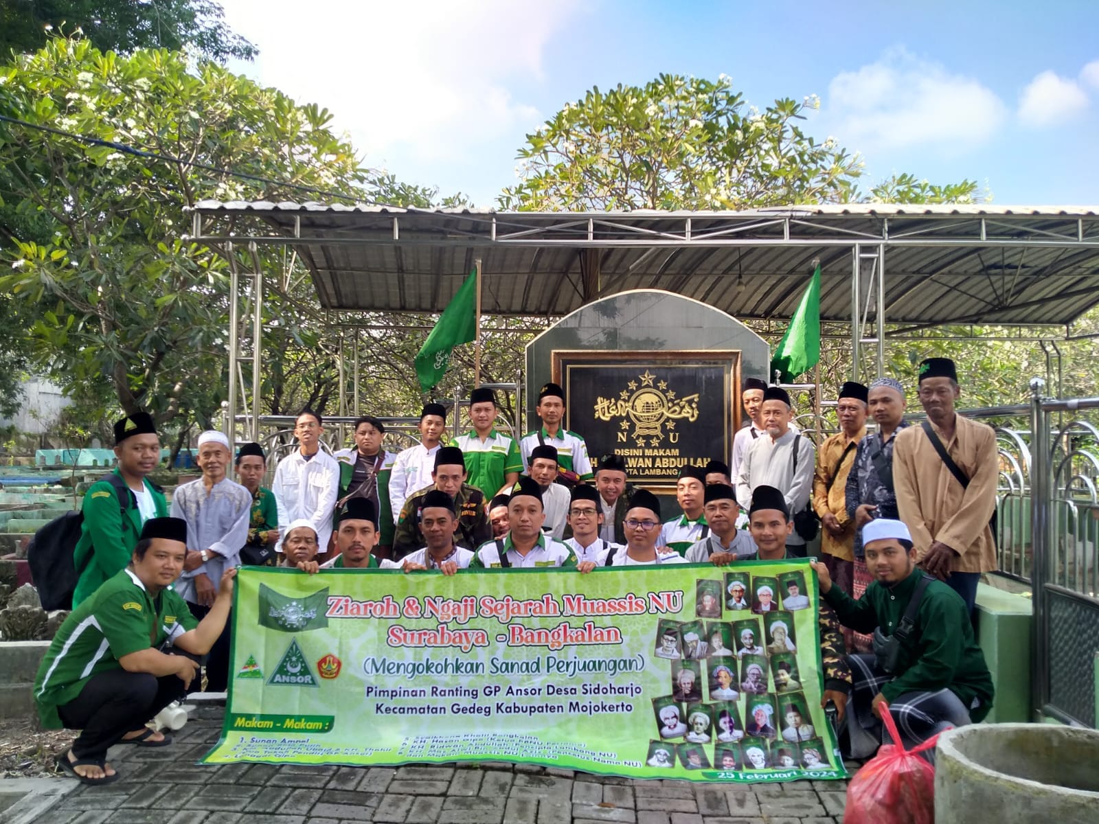 Pimpinan Ranting (PR) Gerakan Pemuda (GP) Ansor Desa Sidoharjo, Kecamatan Gedeg, Kabupaten Mojokerto Melaksanakan Ziarah dan Ngaji Sejarah Muassis Nahdlatul Ulama (NU), Ahad (25/02) pagi.