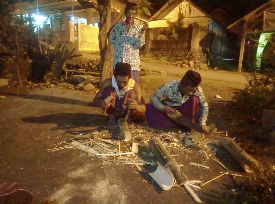 Jatirejo, NU Online Mojokerto – Pengurus Masjid Nurul Iman dan anggota Barisan Ansor Serbaguna (Banser) Anak Ranting Lebak Geneng membuat alat patrol tradisional dari bambu yaitu kentongan, alat tradisional ini sudah jarang digunakan karena anak muda milenial sekarang banyak yang menggunakan sound yang dibawa dengan mobil saat akan membangunkan sahur.