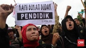 Akan tetapi perjalanan dan tujuan ini sangat berat mengingat masih banyak tenaga pendidik yang masih belum mendapatkan apa yang seharusnya mereka dapatkan seperti hal-nya Gaji Guru, Tunjangan, Hingga fasilitas yang di berikan oleh pemerintah terhadap guru pendidik. Menurut Survey Kemendibud yang di lansir CNN Indonesia di tahun 2019 Jumlah Guru hingga saat ini mencapai 728.461 orang. Kalau melihat data tersebut terlihat banyak Guru yang yang berstatus Honorer, menurut saya “Itu hal yang sangat miris sekali mengingat Tingkat pendapatan guru yang satu dengan yang lain sangat berbeda”. Menurut Ramli Rahim selaku ketua Ikatan Guru Indonesia (IGI) dilansir dari CNN Media mengatakan” akar masalah kesejahteraan Guru Honorer adalah jumlah Guru yang yang tidak sesuai kebutuhan inilah yang menjadi akar masalah Pendidikan” yang lebih mirisnya lagi adalah gaji seorang Guru Honorer yang per bulannya 200.000 sampai 500.000 itupun tidak seimbang dengan lokasi Rumah dan Tempat mengajarnya belum lagi kalau gaji itu telat, lalu gaji itu di pakai untuk memenuhi kebutuhan Keluarga Secara logika Apakah Cukup ? akan tetapi semangat perjuangan Guru Honorer kita harus apresiasi secara garis besar edukasi yang diberikan ilmu yang selalu di limpahkan dan sikap ikhlas yang diberikan kepada murid muridnya mengingat tugas Guru mempunyai pengaruh besar terhadap Sumber Daya Manusia yang ada di bangsa ini.