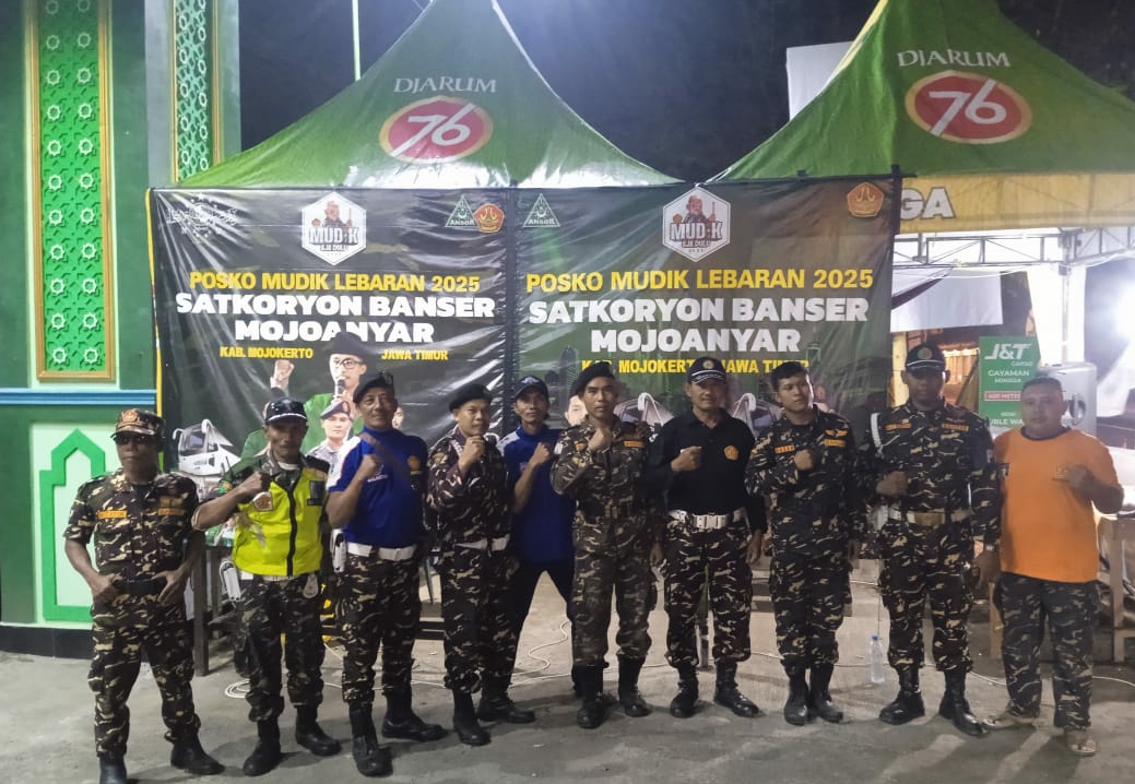 Satuan koordinasi rayon (satkoryon) Banser Mojoanyar kabupaten Mojokerto mendirikan posko mudik 1446H mulai hari Jum’at (28/04/2025) dan akan berakhir hari kamis (03/04)2025) dengan tujuan membantu masyarakat yang mudik ke kampung halaman dan menjaga kondisi waktu hari raya idul Fitri.